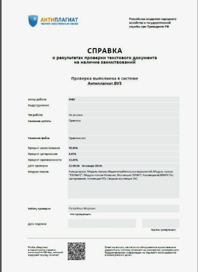 Предоставляем полный отчет и сертификат об оригинальности работы.